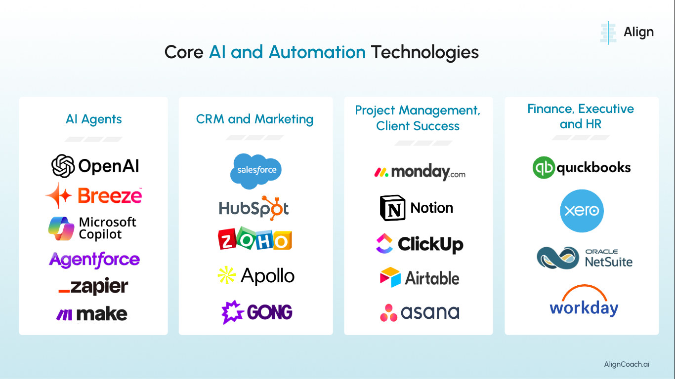 Our Align → Automate → Achieve framework ensures that automation is not just implemented but continuously optimized. Every department, from Sales to Client Success, Finance to HR, benefits from structured, role-level automations that drive efficiency, scale, and impact.