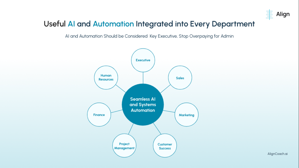 At AlignAI.dev, every team member, regardless of role or seniority, has a KPI Goal to automating one or more of their responsibilities each month. This KPI is a win for everyone: it reduces manual workloads, increases employee satisfaction, keeps workweeks at 40 hours, and frees up employees to be in the zone of their genius. Automation is embedded into operations and daily work rather than left as an optional or occasional initiative.